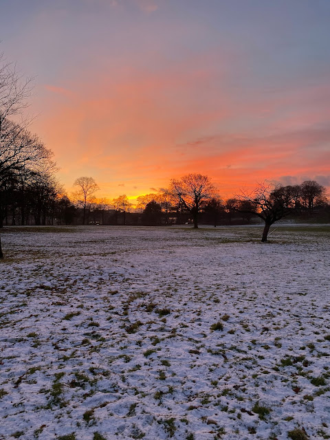 I bravely managed to take one more photo because I didn't want to forget the stunning sunset. I wonder if we'll get any more snow this year. This is as much as Lancaster gets these days, and it's usually nearer the spring. Perhaps we'll have a bit more next month, or the one after. I think my mum said that it snowed when I was born, which was in April, but I might've misremembered that.