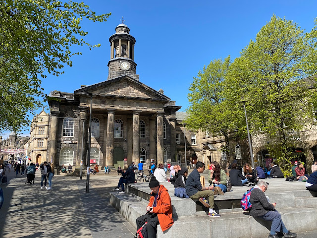 Back out in the open, town was busy. I still feel a bit strange being so close to this many people without masks. Matthew just kept his on, but I've not mastered the trick of not getting my glasses steamed up, so I took mine off between shops.